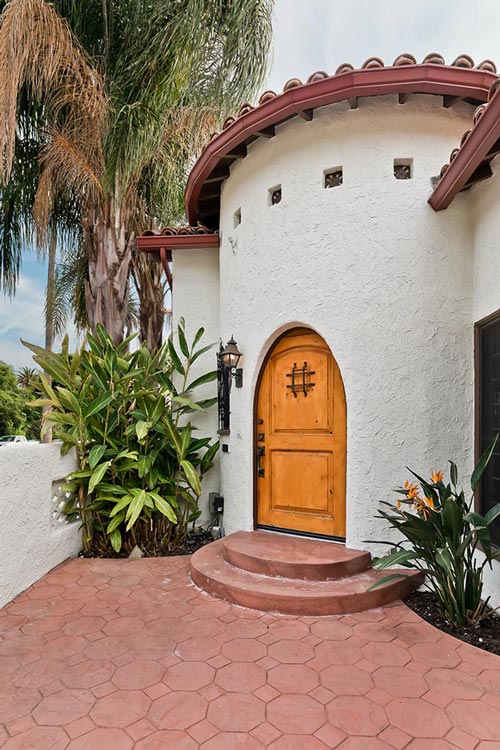 On a quiet calm friendly neighborhood street with easy access to the best shops and restaurants in Los Angeles and West Hollywood. Courtyard patio entry and gated driveway. Rotunda Foyer and large vaulted living room with Batchelder decorative fireplace and large picture window. Sunny bright breakfast room with built in sideboard and drawers, with dramatic hemispherical domed ceiling. Formal Dining room. Hardwood framed French door windows with leaded glass panes in the dining room and breakfast room. Kitchen with updated granite counter tops and direct access to laundry and bath. Three big bedrooms. Master alcove with vintage dressing table. Built-in linen cabinets and drawers in the hall. Character wood doors, glass doorknobs, vintage bath with gorgeous tile. Hardwood floors throughout. Two Car garage with retrofit. Large grassy backyard. House has upgraded foundation, plumbing, roof and maintenance. Move in & live the Old Hollywood dream. 1,963 sf home on 6,554 sf lot.